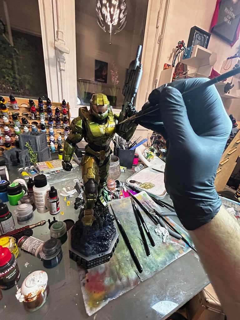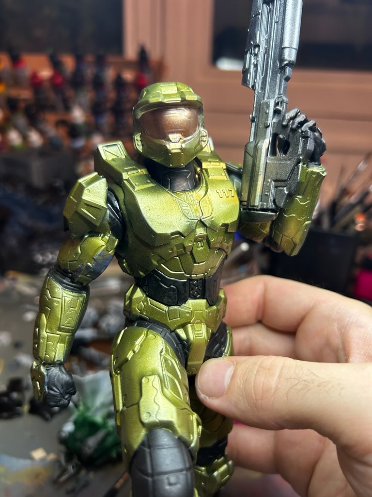 Cette pièce n'est plus une simple figurine, mais une véritable œuvre d'art miniature. Elle témoigne de la passion, de la patience et du talent de notre client pour la peinture de figurines. Le choix des couleurs, la technique d'ombrage et la propreté de l'application transforment cet objet en une représentation dynamique et héroïque du Master Chief.