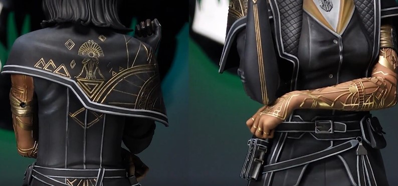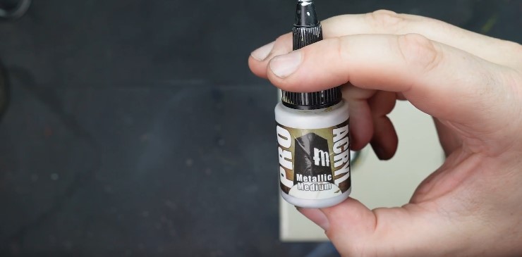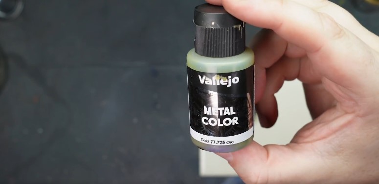 Pearl Ex Solar Gold (pour Viktor) Green stuff world antique gold (pour Lune) Pearl Ex Knox gold (pour Gamora) Additif : Améliorateur de fluidité Vallejo (Flow Improver)Optionnel : Un médium métallique peut être utilisé pour ajuster la couleur sans affecter la consistance ou le lustre. Parker utilise le médium métallique Pro Acryl à cette fin.