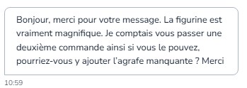 - Les impressions sont nettoyées et poncées par nos soins, toutefois, chaque figurine peut nécessiter un ponçage supplémentaire de votre part, ainsi qu’un joint aux lors du collage des pièces.